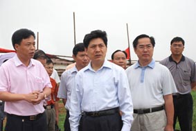 崔智友與相關部門負責人首先冒雨來到湘桂循環經濟產業園酵母建設工地,實地查看了項目建設情況。湘桂集團董事局副主席陳輝向崔智友書記匯報了循環經濟科技產業園目前項目進展情況:年產一萬噸活性干酵母項目目前已基本完成廠房建設,正在進行設備的安裝與調試,預計在十月可投產;年產9.8萬噸蔗渣漿項目已被列為自治區2009年重大項目之一,已經完成項目可行性研究報告的編制工作,正在進行項目的環評工作。
