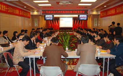 交流考察團一行隨后在湘桂集團三樓多功能會議廳觀看了湘桂集團宣傳短片,并與下屬湘桂公司黨委就學習實踐活動進行了遠程互動交流。考察團組長自治區非公有制經濟組織學習實踐活動領導小組副組長、指導組組長,自治區黨委統戰部副部長、自治區工商聯黨組書記馮成善同志對湘桂集團的黨建工作及學習實踐科學發展觀活動開展情況予以了充分肯定。他說:從此次考察交流可以看出,湘桂集團對黨建工作十分重視,集團黨委書記高度重視學習實踐活動的開展,全體員工特別是黨員同志對學習實踐活動認識到位、學習認真、調研深入,學習形式靈活多樣,實施“外出學”、“遠程學”、“網絡學”、“一帶一、一帶多”等學習方式,獨具湘桂特色;湘桂集團黨委在企業內部奠定了扎實的政治理論基礎,黨組織的政治堡壘作用和黨員同志的先鋒模范作用效果明顯,有效促進了湘桂集團事業的發展,富有學習創新、銳意進取精神的湘桂集團必將取得更大的輝煌。