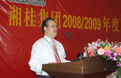 集團董事局副主席陳輝在動員會上致辭。他說,2008/2009年度是湘桂集團發展史上極為不平凡的一年。這一年,在各級黨委、政府和有關部門的大力支持和關心幫助下,在集團董事局的領導下,集團廣大員工團結拼搏、眾志成城,戰勝了國際金融危機帶來的種種困難,順利將集團“二次創業、二次發展”的諸多項目有序鋪開,集團的產能產值、產品質量和品牌價值正在實現質的飛躍,開創了湘桂集團發展史上的新紀元。