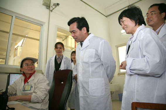 自治區黨委常委、統戰部部長黃道偉(右三)深入湘桂福萊順酵母有限公司生產車間了解