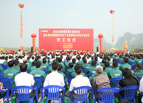 圖為湘桂集團年產9.5萬噸蔗渣綜合利用示范項目開工儀式現場