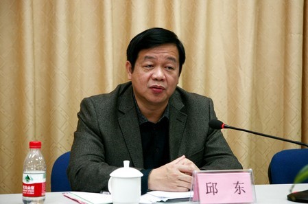 圖為自治區工信委副主任、自治區糖業發展局局長邱東講話。