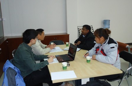 圖為與斯里蘭卡客商洽談現(xiàn)場(chǎng)。