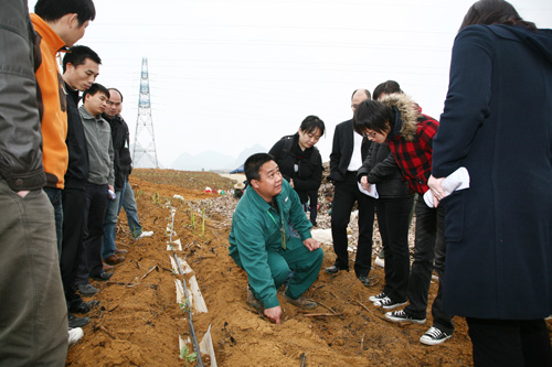 圖為集團農務工作宣傳組在湘桂公司參加農務技術現(xiàn)場培訓。