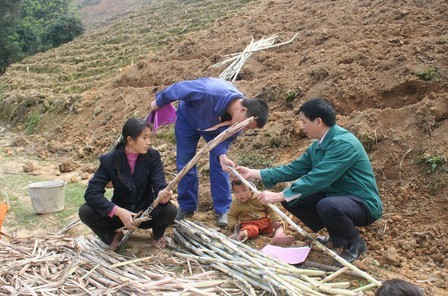 圖為湘桂公司宣傳組成員在現(xiàn)場指導蔗農種蔗。