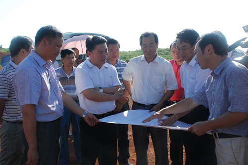 崇左市發(fā)改委主任覃作標(biāo)(左三)在考察現(xiàn)場(chǎng)。