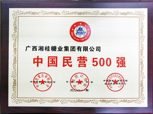 近日,湘桂集團以優異的綜合業績再次榮登“中國民營500強企業”榜單,喜獲“2011年中國民營500強企業”榮譽稱號,湘桂集團已連續四年獲此殊榮。