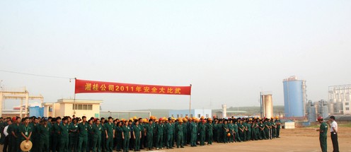 為了進(jìn)一步提高廣大員工的安全意識,全面提升職工隊(duì)伍安全防護(hù)技能,近日湘桂集團(tuán)下屬子公司廣西崇左市湘桂糖業(yè)有限公司(以下簡稱湘桂公司)組織開展以“以人為本、安全生產(chǎn)”為主題的2011年機(jī)修期車間班組級安全大比武活動。