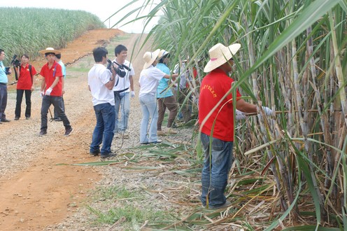 馮學軍詳細詢問甘蔗品種種植情況并與蔗農親切交談,當得知蔗農李師洪通過帶頭進行甘蔗新品種種植,大大提高了單產,走上致富道路后,馮學軍大加贊賞。他說,提高甘蔗單產對促進崇左市蔗糖業發展起到重要作用,而這次“走基層、轉作風、改文風” 活動就是要總結報道各地農民增產增收的典型事例,在全市形成新農村建設的良好輿論氛圍。同時希望湘桂集團加大示范基地的建設力度,以科學技術提高甘蔗單產,實現科學化種植,帶動更多農民實現增收致富,實現蔗農與企業之間的共贏。