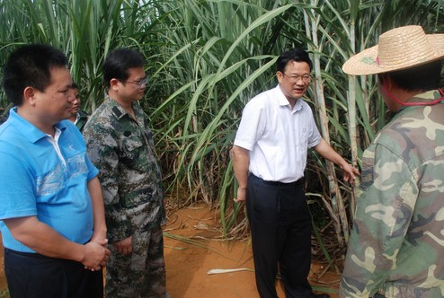 崇左市委常委、宣傳部部長、副市長馮學軍(右二)在湘桂集團甘蔗示范基地調研。