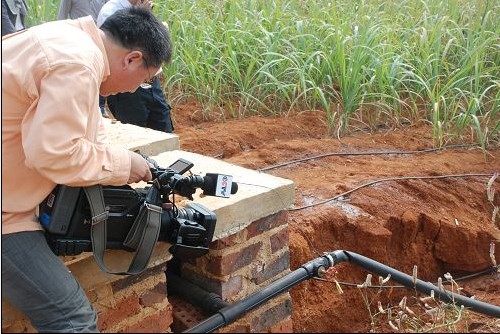 中央媒體采訪團一行在示范基地聽取了湘桂公司常務副總經理莫江的情況介紹。莫江對中央媒體采訪團的到來表示熱烈歡迎,他說,湘桂公司孔香屯甘蔗種植示范基地全面實施高效節水灌溉工程,并實行水、肥一體化,是崇左市江州區實施30萬畝甘蔗高效節水灌溉工程項目之一;實施甘蔗高效節水灌溉工程有效地實現了甘蔗增產、農民增收的目的,同時有效節省勞動力,降低企業生產成本;莫江表示,湘桂公司在提高企業效益的同時,每年向農民提供各類補貼扶持金額達到3000~4000萬元,使農民更多地享受到種甘蔗帶來的收益,帶動農民走向富裕,為地方經濟發展做出應有的貢獻。
