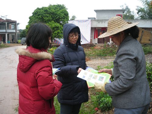 集團監事會監事張守輝(左一)挨家挨戶發放宣傳資料。